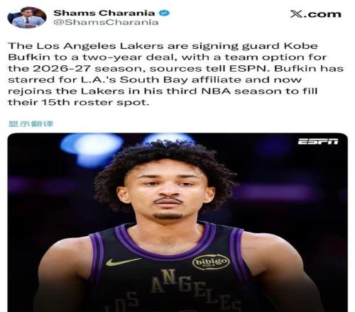 北京时间2月8日,根据ESPN名记Shams报道,洛杉矶湖人用一份1+1的两年正式合同签约后卫科比-巴夫金,其中第二年是球队选项,他成为湖人阵容第15人,曾经在G联赛有过单场41+8+8三分表现。