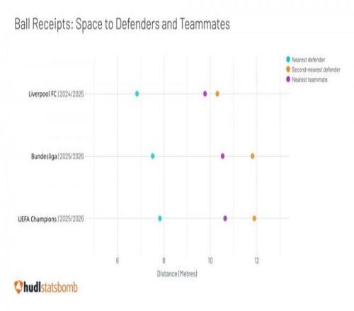 截至英超第23轮,利物浦左路场均突破从迪亚斯离队前的11.2次降至7.5次,进攻三区传球成功率从81%跌至65%,造点仅2次,而迪亚斯本赛季在拜仁造点6次,成为德甲造点王。过往在利物浦迪亚斯并不是绝对核心,也不是绝对主力,单看数据他上赛季甚至不如“神秘内切男”加克波,但失去迪亚斯的冲击力导致利物浦的高位压迫体系场均前场压迫次数从18.5次降至15.2次,反击机会减少35%。
