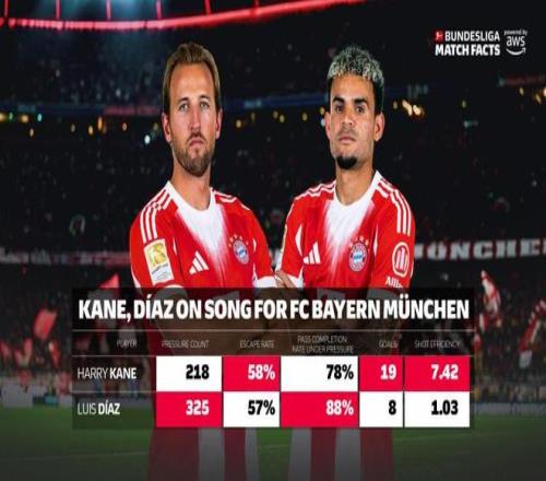 更让德甲后防线无奈的是,迪亚斯的串联能力让“专人盯防”策略失去意义。毕竟,这支拜仁还有凯恩、奥利塞、穆夏拉、卡尔、格纳布里。正如德转战术分析师马克·舒斯特尔所言:“德甲球队仍在试图用防守传统边锋的方式防守迪亚斯,但他是一名现代全能边锋,能突破、能得分、能串联、能造点,单一的防守策略根本无法限制他,而多人协防又会给拜仁其他球员留出空档,这是一个无解的战术困境。”