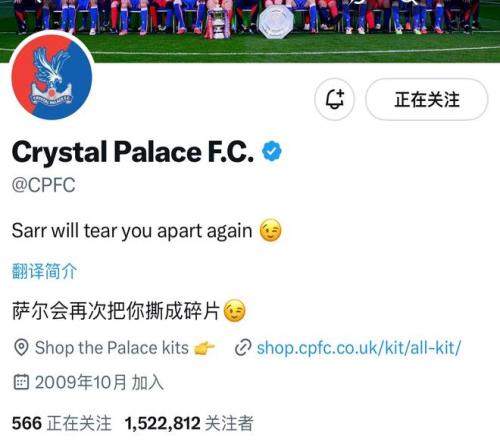 雷速体育10月31日宣 在联赛杯3-0击败利物浦后,水晶宫俱乐部官方社媒修改简介,再次调侃了对手。