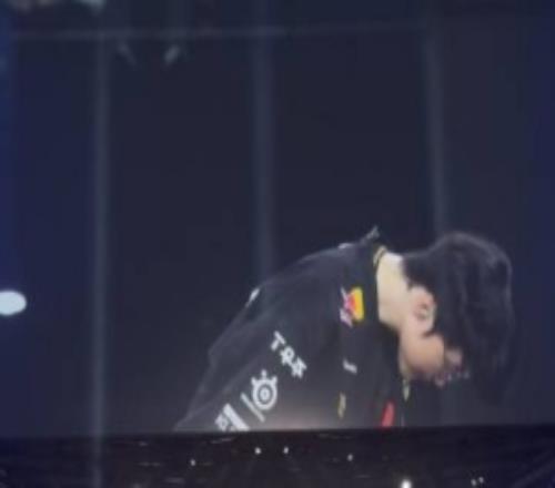 Faker在全场的喊声中。