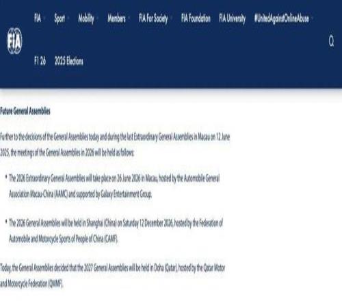 日前,国际汽联(FIA)在2025年度大会上宣布,2026年FIA年度大会将在上海举办,由中国汽车摩托车运动联合会(CAMF)主办!