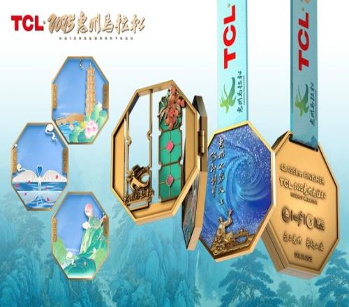 此次完赛奖牌延续三折叠设计,加持了幸运盲盒,融合东坡韵、荔枝红与岭南窗,呼应“日啖荔枝三百颗,不辞长作岭南人”的佳话;同时,以“山海为签 新年如愿”为主题,创新采用盲盒形式,内含三款可拆卸冰箱贴,以鹅城大桥寓意“大展宏图”、惠州西湖寓意“好事莲莲”、罗浮山寓意“春山可望”,祝愿跑者跑过山海,所愿皆达。
