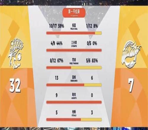 四川队新赛季6连败,场均得分只有67.2分,排在CBA倒数第一;本场比赛他们还是毫无争胜欲望,6分钟打完,全队8投只有1中,上海男篮得到29分的时候,四川男篮仅仅拿到可怜的2分。首节战罢,大鲨鱼32比7,领先对手25分。