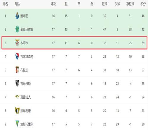 在此之前,本菲卡8个主场4胜4平,也就是说他们一半的主场比赛都丢分了。正是因为主场表现不佳,导致本菲卡被榜首的波尔图拉开10分的差距,争冠基本无望。接下来,本菲卡的目标是竞争前二,争取晋级下赛季欧冠。