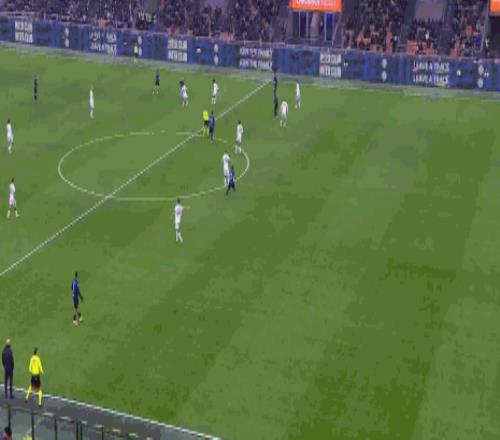 第19分钟,劳塔罗抢断后无私横传,黑格姆及时回防化解