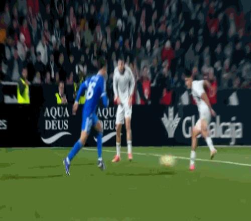 第69分钟,皇马开出任意球,贡萨洛头球攻门顶高