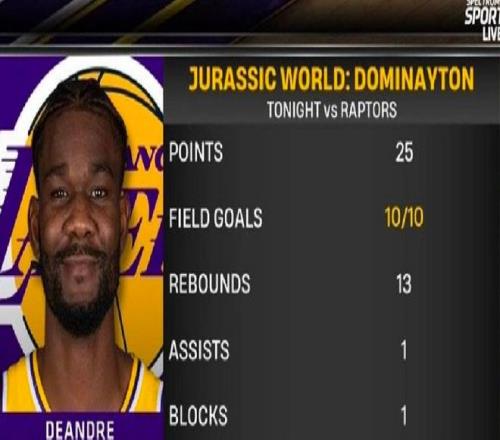 艾宝,不,艾顿数据很是亮眼,投篮10中10,以100%命中率独揽25分13板两双数据,队史比肩2003年的奥尼尔、1981年的库普切克和1969年的张伯伦。