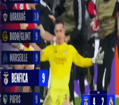 特鲁宾补时第8分钟的进球,则让本菲卡以1个净胜球的优势反超马赛,排名第24名拿到了附加赛门票。《阿斯报》指出,“穆里尼奥的妙手回春,让本菲卡踢了一场精彩的比赛。他们让皇马自换帅以来从未如此痛苦,同时,穆里尼奥也为比赛增加了额外的戏剧性。”