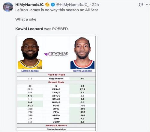 尽管如此,对于快船队和伦纳德本人来说,全明星的遗珠之憾或许已翻篇,眼前的团队目标更为重要,球队目前展现出了良好的化学反应,伦纳德作为绝对核心保持着巅峰状态,他们的目标显然是希望在季后赛中走得更远,用更具说服力的团队成绩来证明自己。