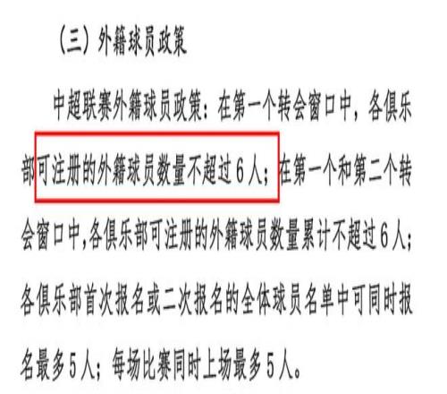 外援注册有新的变化,中超队可以同时注册6名外援,这对参加亚冠的球队更为有利。不过,新赛季中超各队依然只能在35人名单里报名5名外援,这意味着如果注册6名外援,有一名球员会专注亚冠赛事,无法出战中超联赛,这对泰山队的影响并不大。