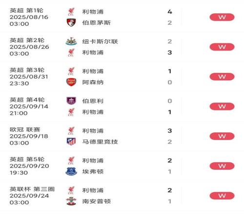 在此前英超第一轮到英联杯的比赛中,利物浦连续六场比赛都是完成绝杀致胜的一方。