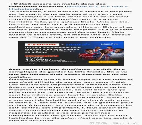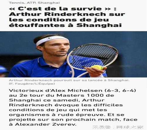 昨天,在上海大师赛第二轮以6-3 6-4击败米克尔森后,法国选手林德克内希在接受《队报》采访时评价上海的湿热天气,并吐槽中国大城市污染严重。