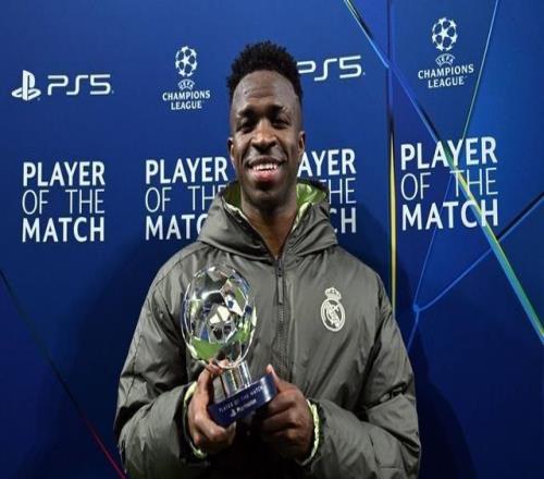欧冠联赛阶段第7轮,皇家马德里主场6-1大胜摩纳哥,此役贡献1球2助的皇马前锋维尼修斯当选欧冠官方全场最佳球员。此役主场对阵摩纳哥,首发出战的维尼修斯打入一球,并分别助攻姆巴